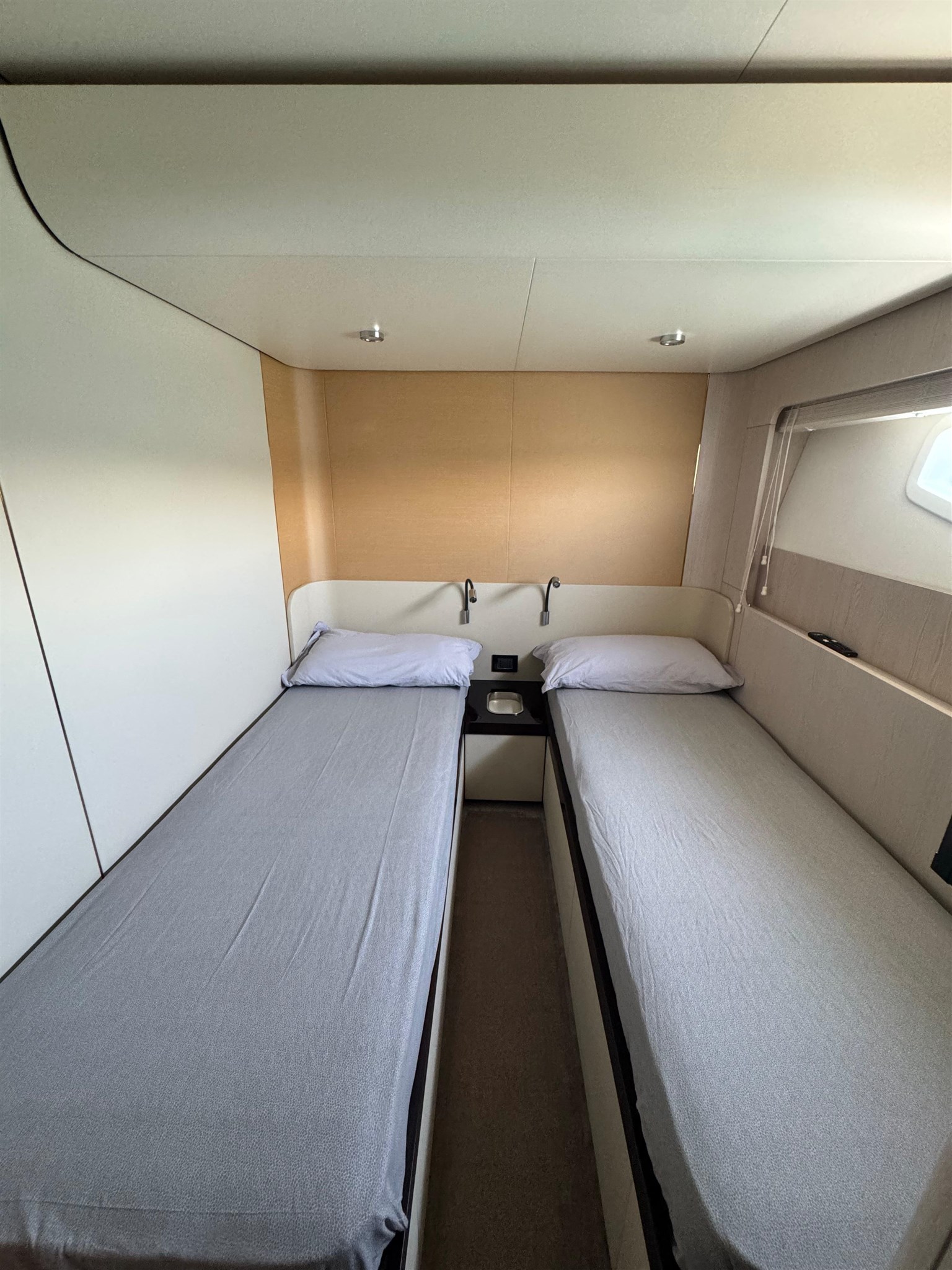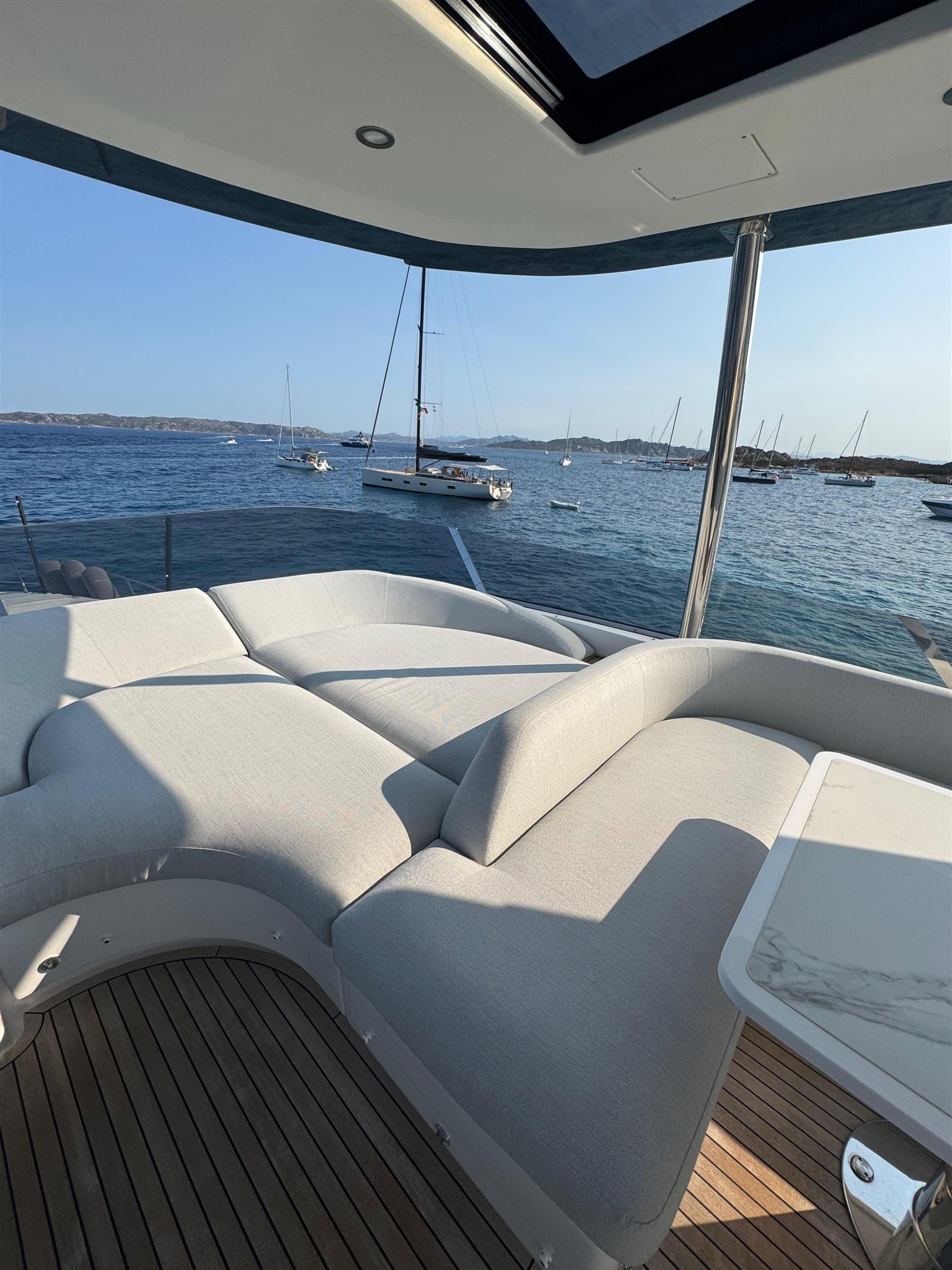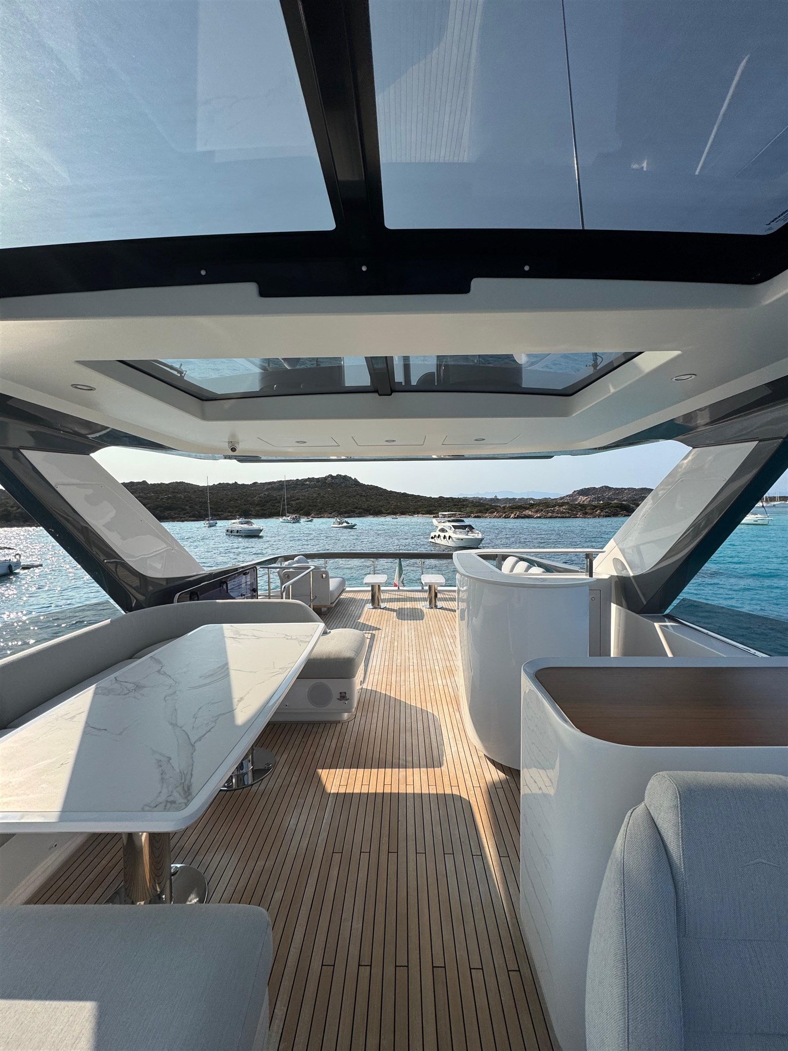 Il Fly 78, ispirato dalle atmosfere di un grande yacht, offre spazi impeccabili senza compromettere l’agilità sportiva tipica delle imbarcazioni di dimensioni inferiori. Questo yacht rappresenta una vera pioniera nel mercato nautico, grazie alla concezione intelligente delle zone di servizio. La galley e l’equipaggio ( 3 persone ) sono stati separati integralmente dal resto dell’imbarcazione, permettendo agli ospiti di godersi l’esperienza senza essere disturbati da attività dietro le quinte. Il lower deck accoglie tre cabine ospiti, di cui due Vip e una a letti gemelli, tutte con bagno ensuite. L’armatoriale, a centro barca, è a tutto baglio.