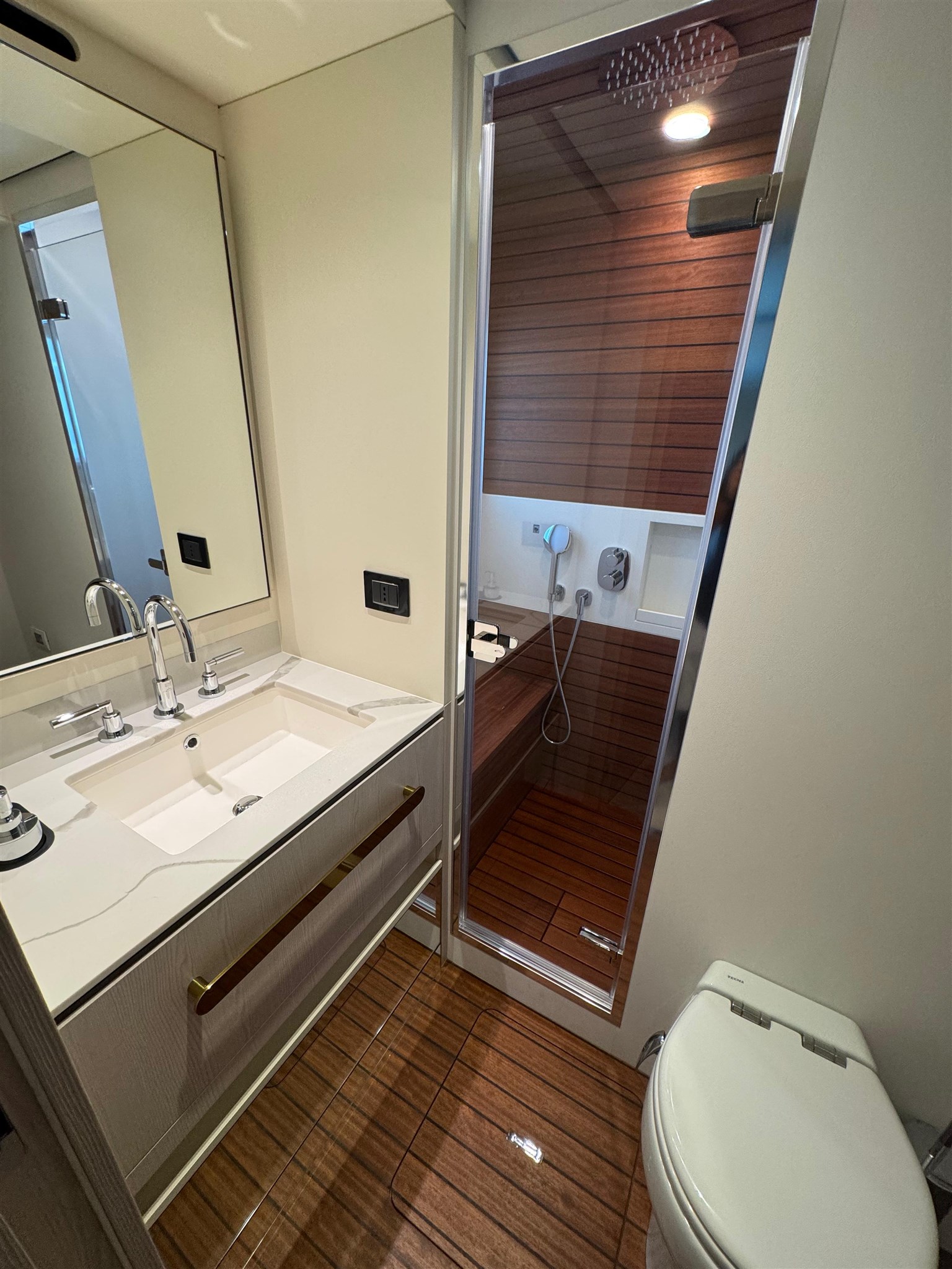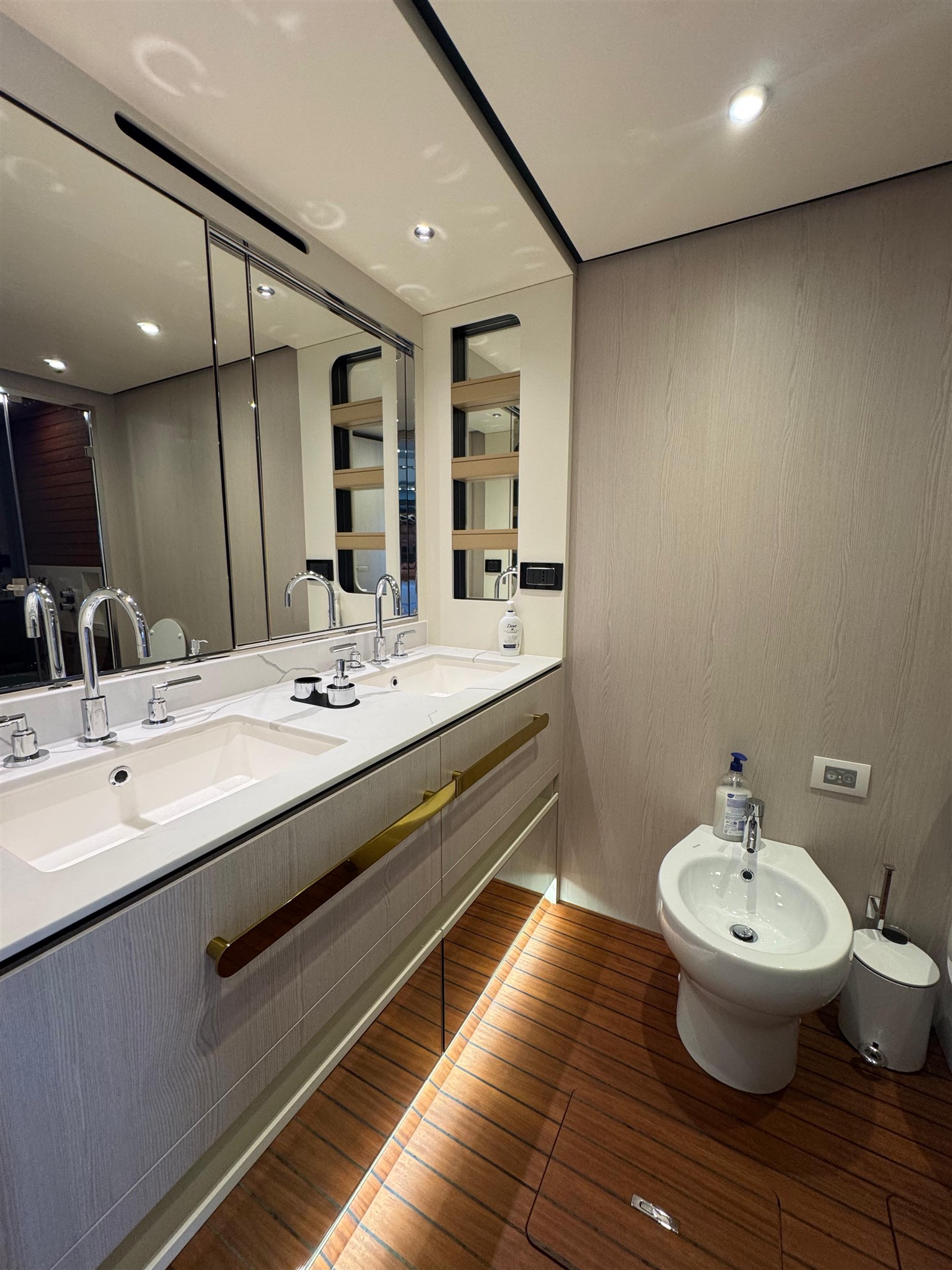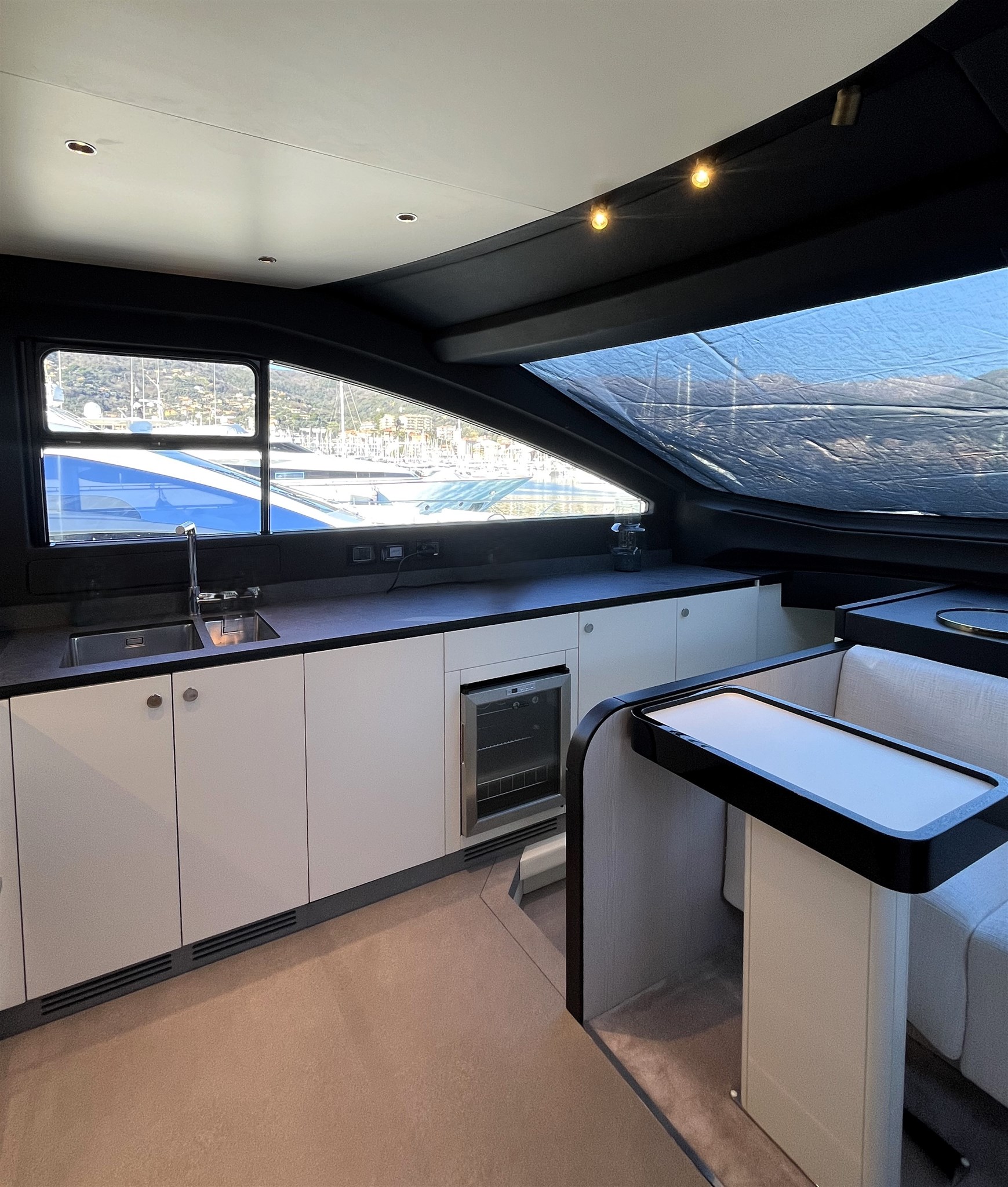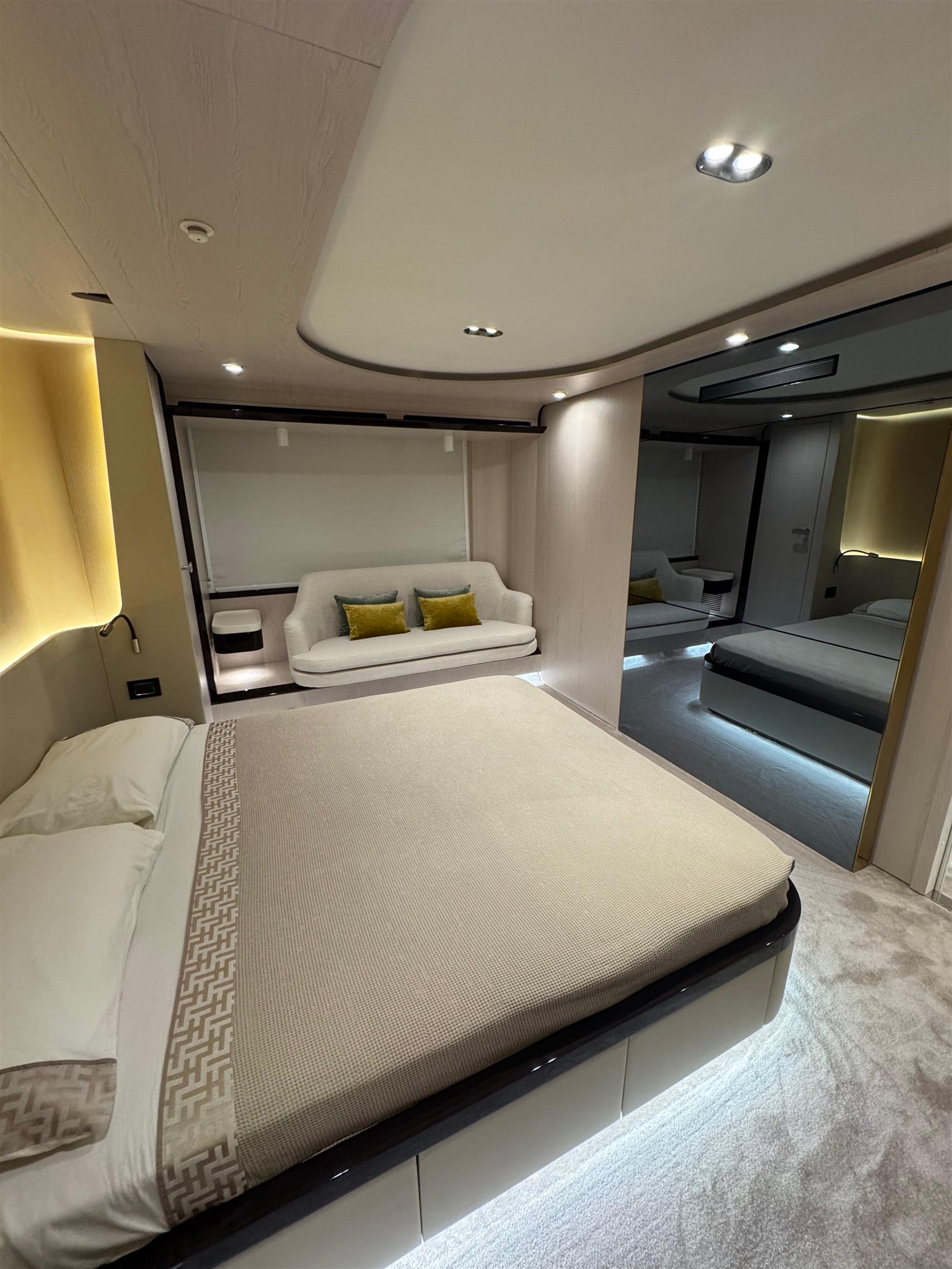 Il Fly 78, ispirato dalle atmosfere di un grande yacht, offre spazi impeccabili senza compromettere l’agilità sportiva tipica delle imbarcazioni di dimensioni inferiori. Questo yacht rappresenta una vera pioniera nel mercato nautico, grazie alla concezione intelligente delle zone di servizio. La galley e l’equipaggio ( 3 persone ) sono stati separati integralmente dal resto dell’imbarcazione, permettendo agli ospiti di godersi l’esperienza senza essere disturbati da attività dietro le quinte. Il lower deck accoglie tre cabine ospiti, di cui due Vip e una a letti gemelli, tutte con bagno ensuite. L’armatoriale, a centro barca, è a tutto baglio.