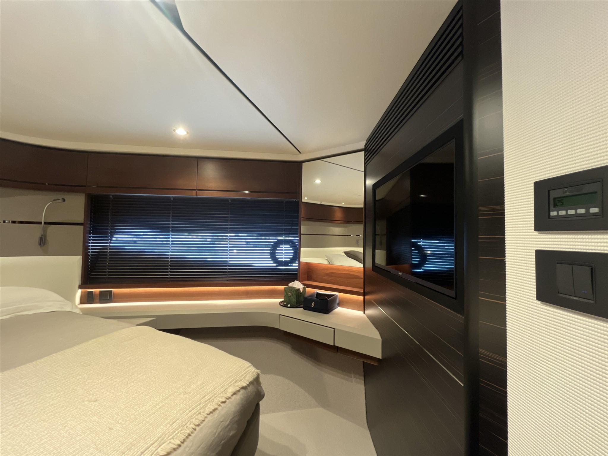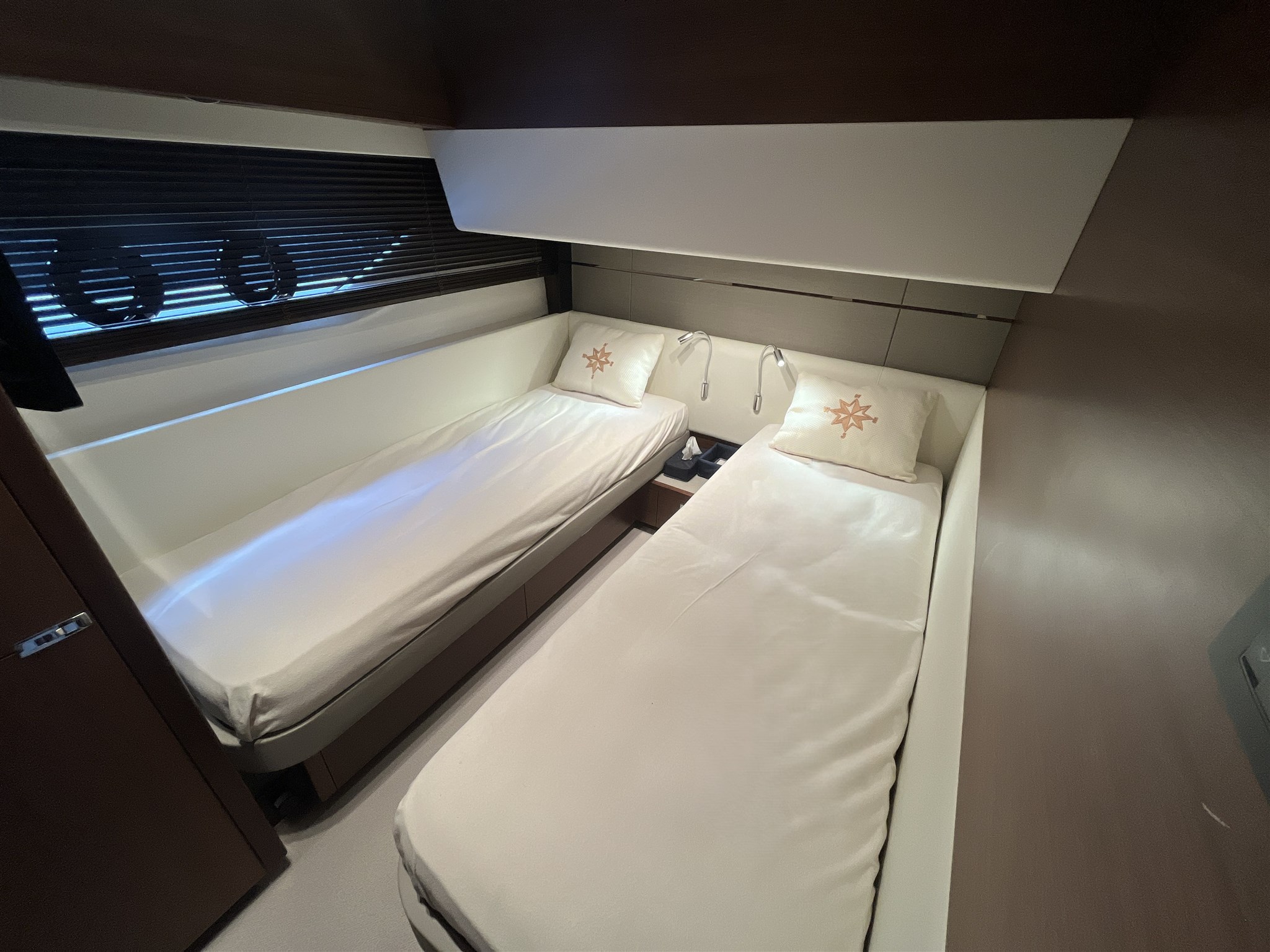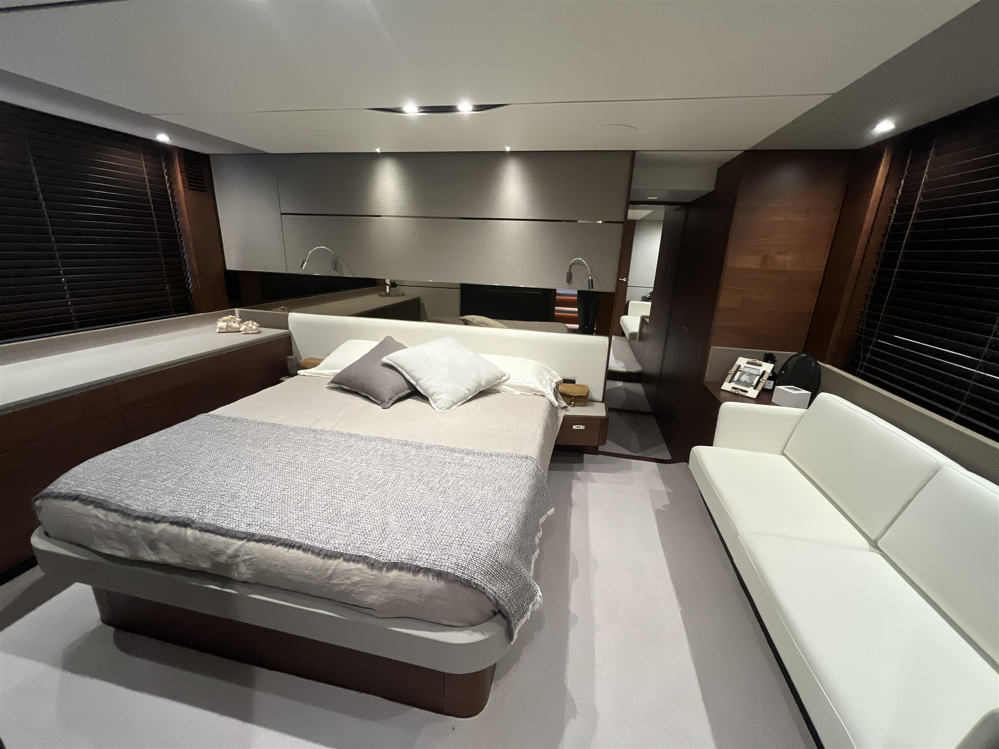 Eleganza, prestazioni e comfort si fondono in questa imbarcazione di lusso, perfetta per crociere con famiglia o amici. Gli interni sono deliziosamente arredati, con materiali di alta qualità e finiture curate in ogni dettaglio. La barca offre 4 cabine ospiti spaziose, tra cui una cabina armatoriale a tutto baglio, 3 bagni completi, oltre a una cabina equipaggio indipendente.