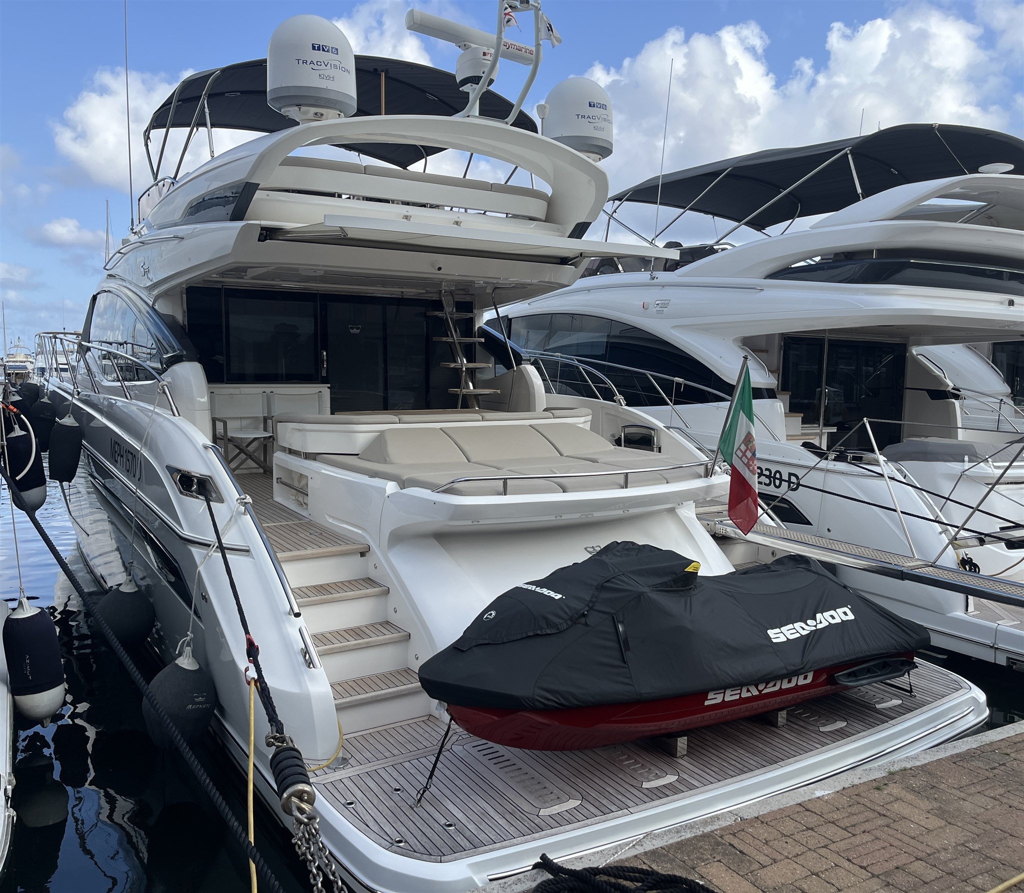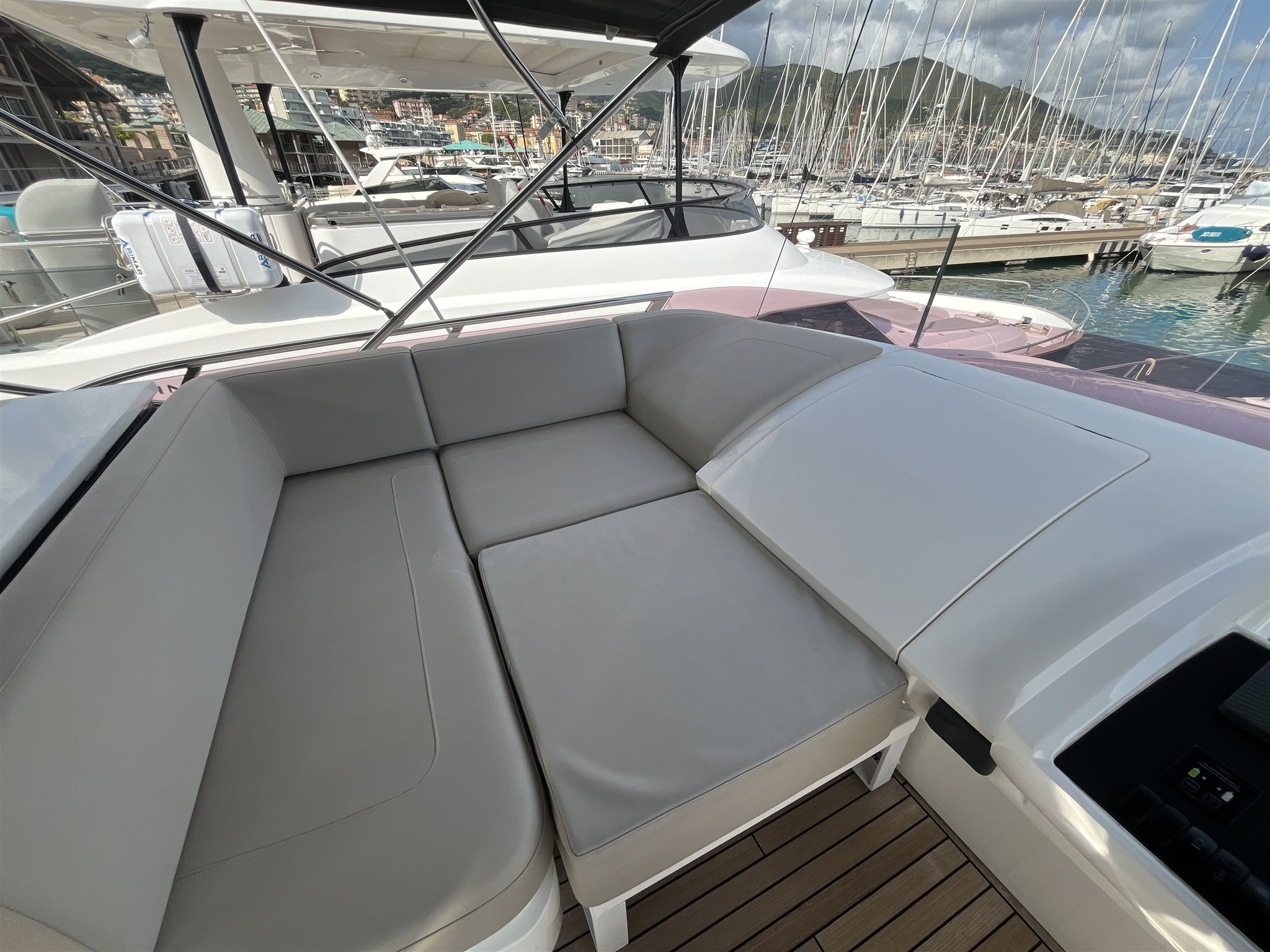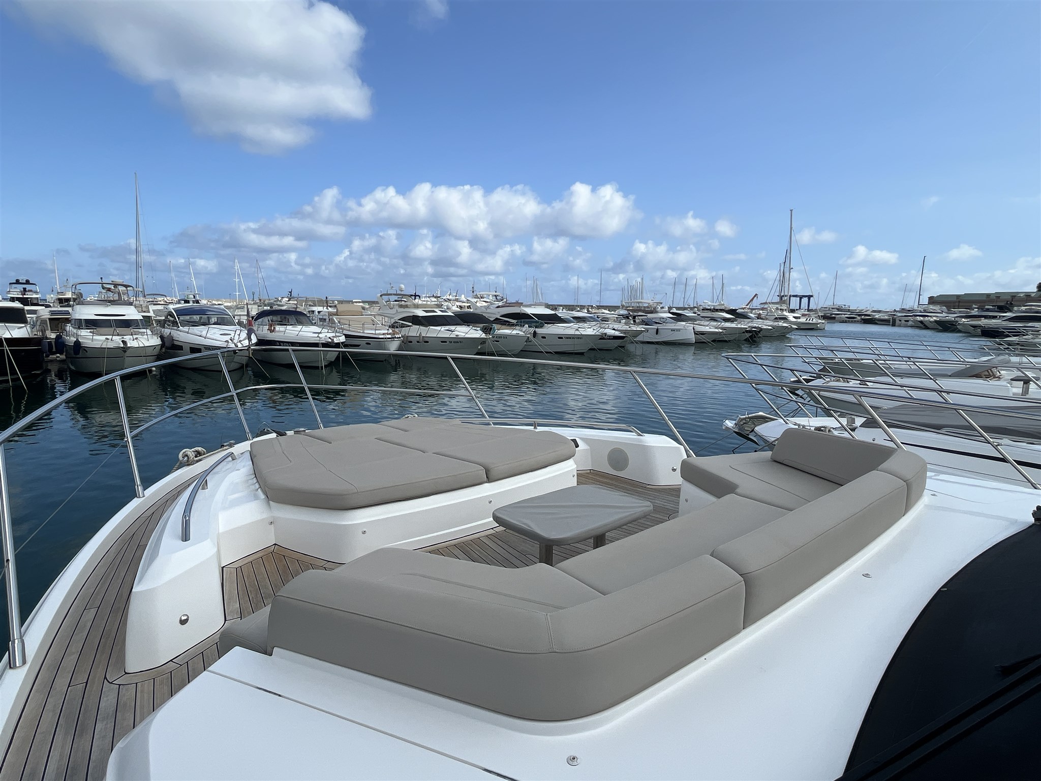 Il layout interno è stato pensato per garantire privacy e comodità, mentre l’ampio salone open space si apre su una cucina ben attrezzata e su una zona pranzo accogliente. Gli esterni includono un grande prendisole a prua, una piattaforma da bagno idraulica e un pozzetto ideale per vivere il mare in ogni momento della giornata