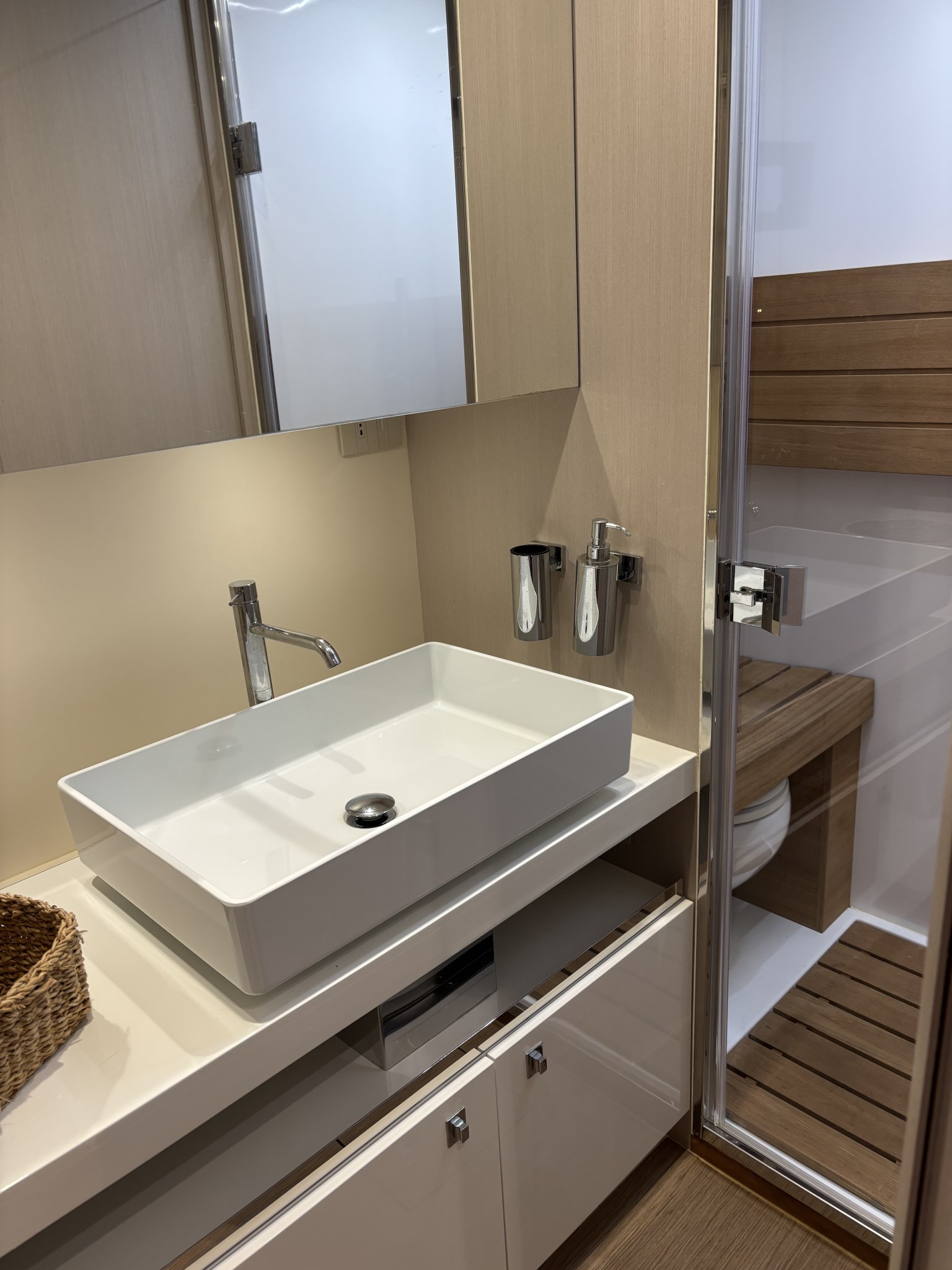 Allarme motore, Allarme sentina, Autoclave, Batterie, Bitte Abbattibili, Caricabatterie, Doccia esterna, Elica di prua - bow thruster, Faro orientabile, Impianto antincendio, Luci di cortesia, Luci subacquee, Passerella, Piattaforma, Pompa di sentina automatica, Pompa di sentina elettrica, Pompa di sentina manuale, Presa 220V banchina, Presa acqua banchina, Salpa Ancore Elettrico, Tavolo, Tromba.