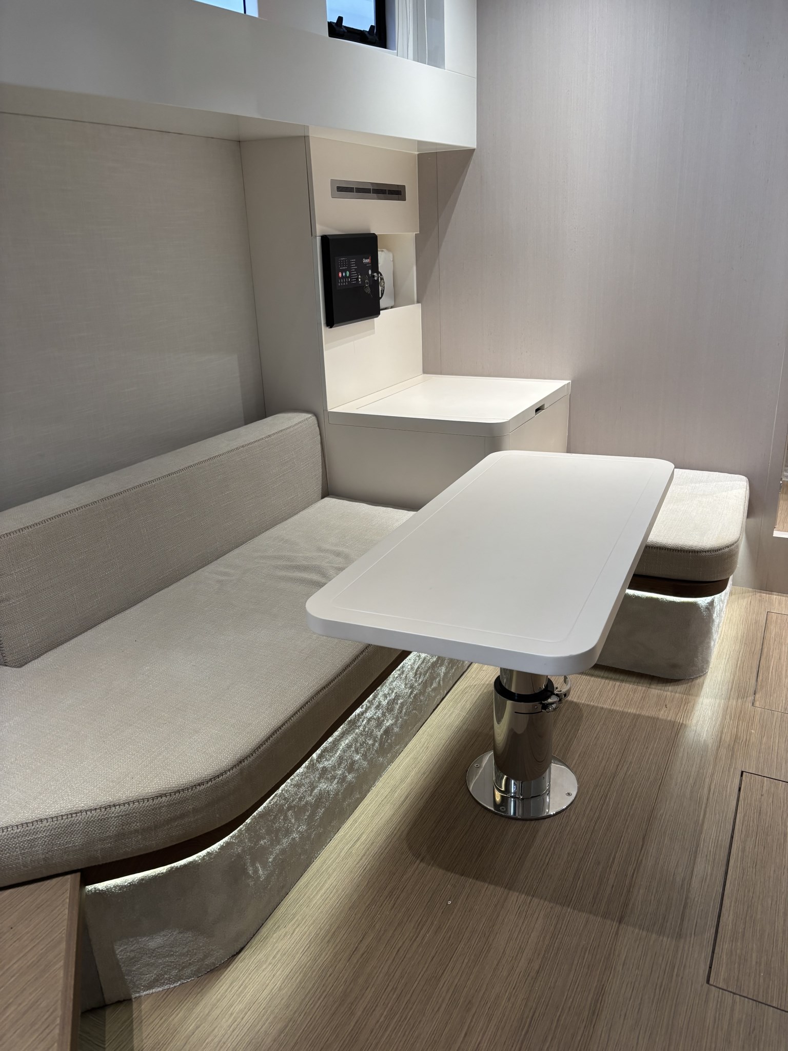 Aria condizionata, Boiler, Clima reversibile, Dimmer per Luci, Inverter, Pavimento interno in legno, Prese interne 12v, Prese interne 220v, Riscaldamento, Telecamera, WC marino elettrico.